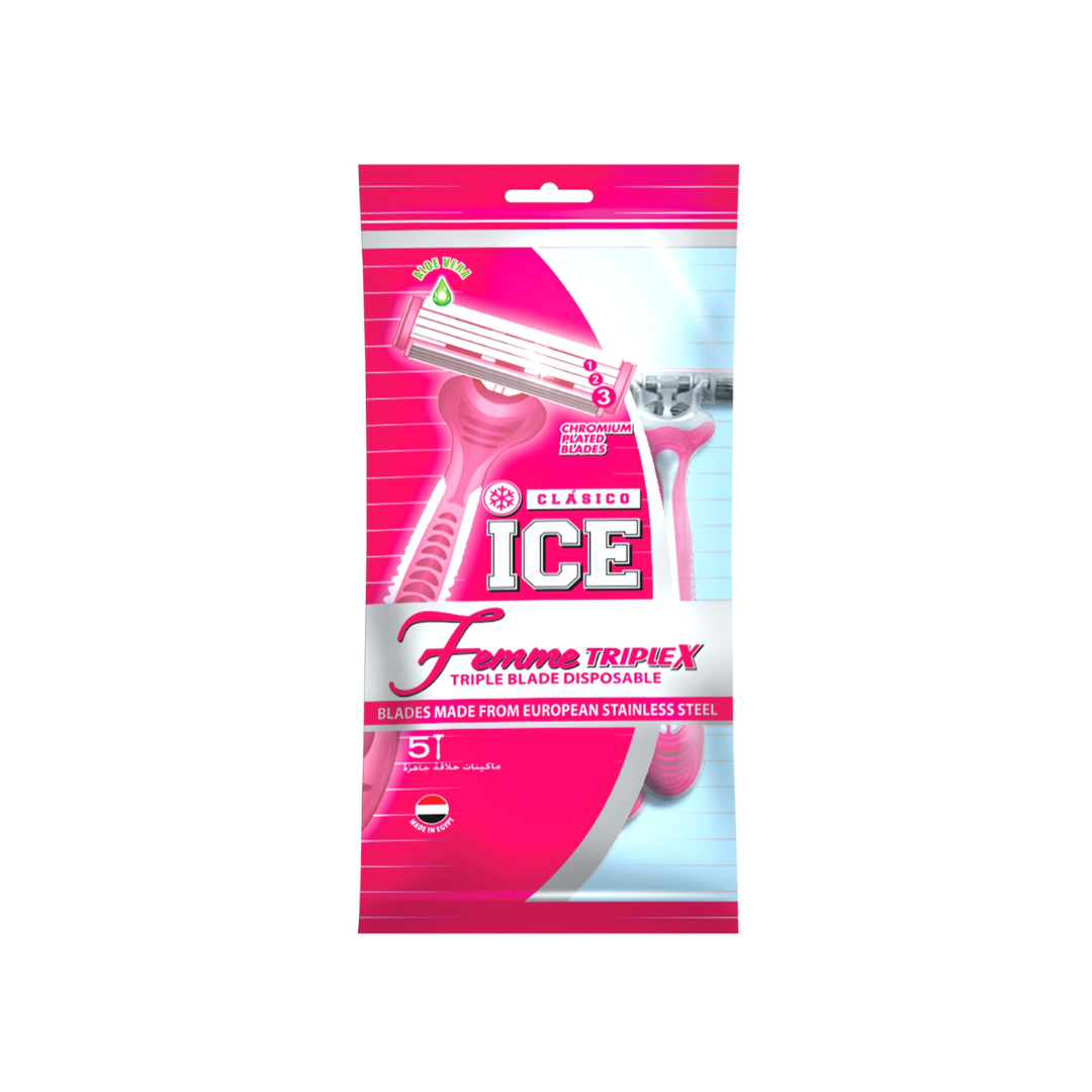 The CLASICO ICE Triplex Femme Razor offers precision shaving with Aloe Vera lubrication and ceramic-coated blades for smooth, skin-friendly results. Perfect for women’s daily grooming.