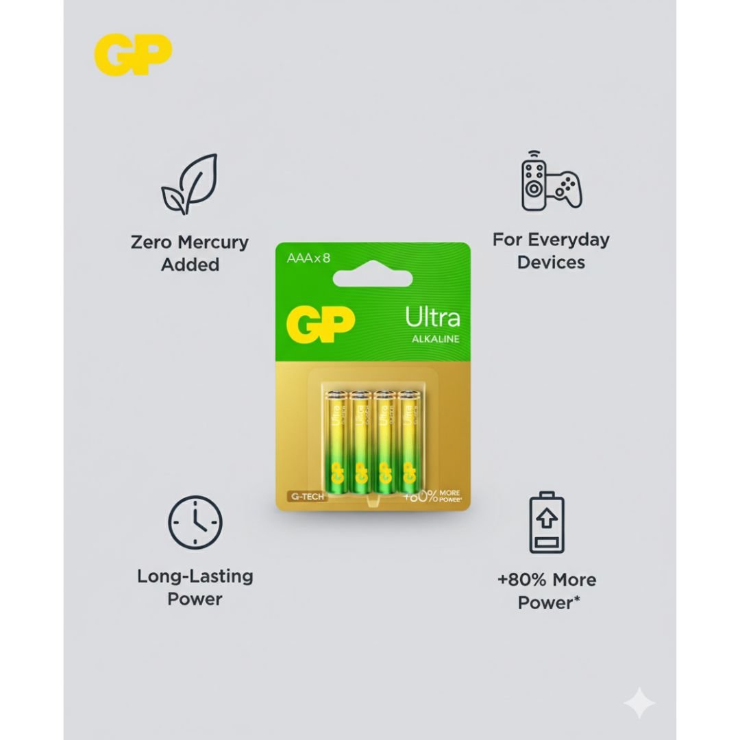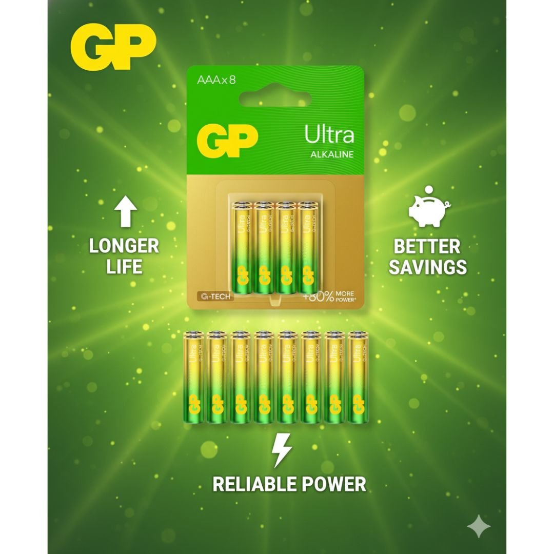 GP Ultra Alkaline AA Batteries (8-Pack) – Long-Lasting Power