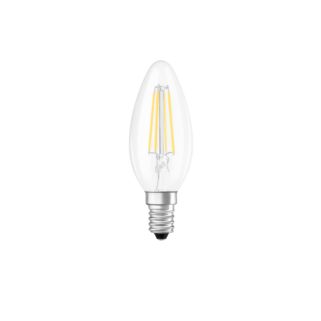 OSRAM Clear Filament CL B bulb delivers a soft warm light in a classic candle shape, perfect for decorative fixtures and chandeliers.