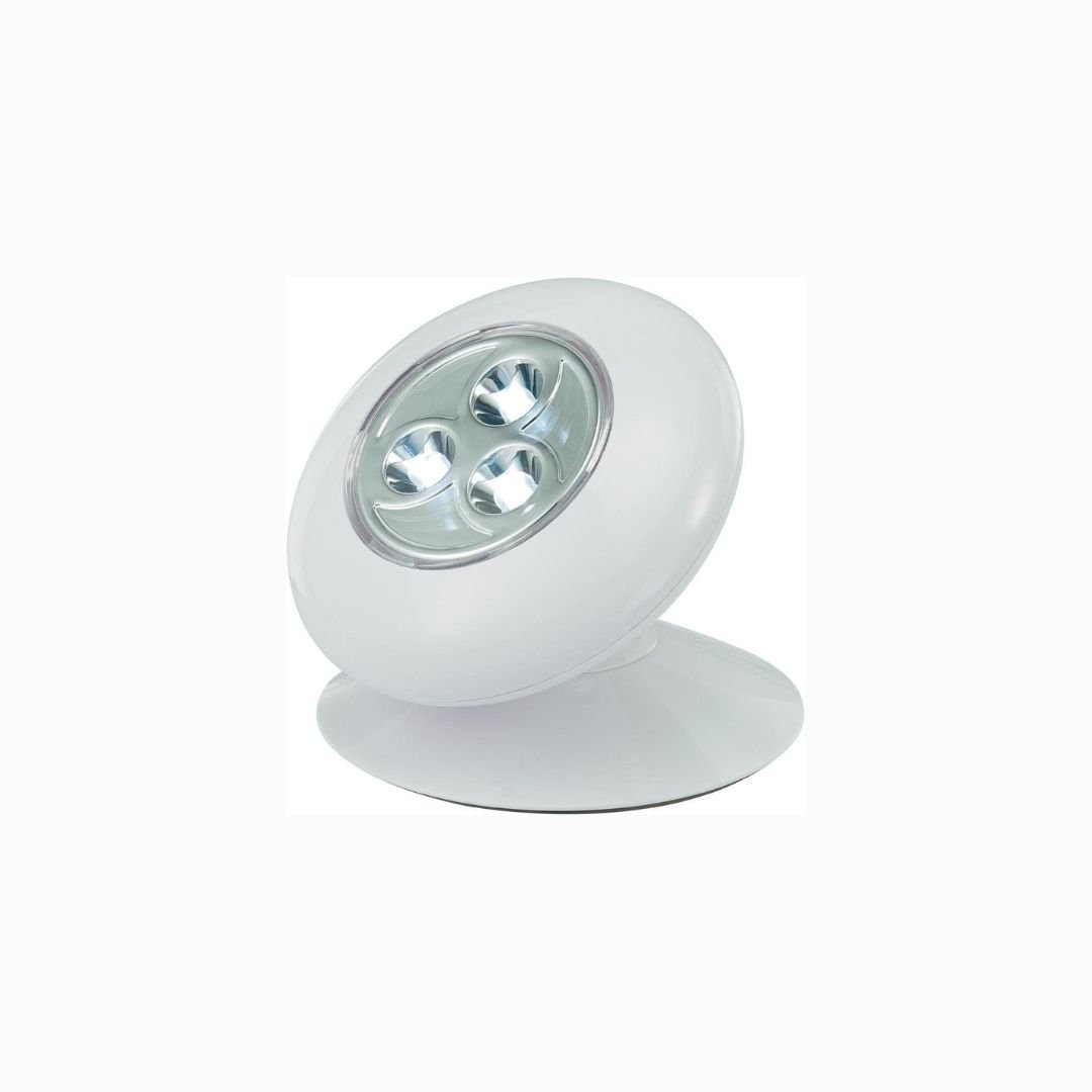 Compact LED puck light designed for quick mounting and flexible use. Provides bright, focused illumination with easy push operation — ideal for cabinets, closets, or vehicles.