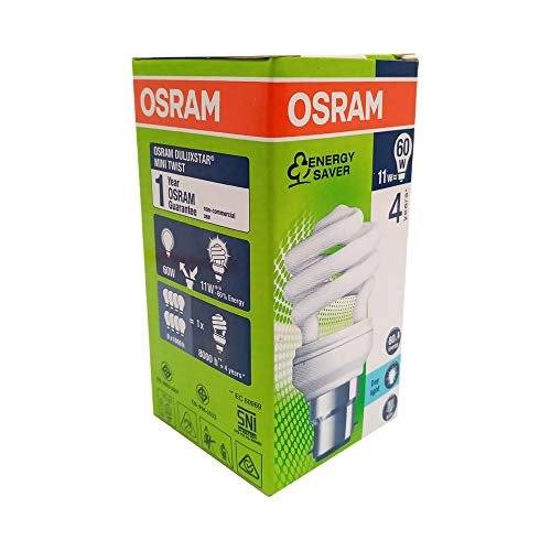 - 11 W spiral CFL with B22d base emitting bright daylight.