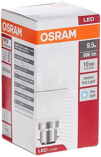 - 9.5 W B22d LED bulbs offering 4000 K cool white light.