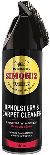 Simoniz Upholstery & Carpet Cleaner delivers deep cleaning for car interiors with an integrated brush head. It removes tough stains and odors safely, leaving a refreshing scent.